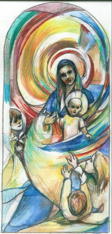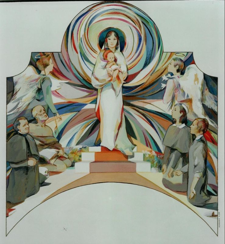 In base alle specifiche richieste della committenza l'artista esegue bozzetti preparatori a colori, in scala ridotta, nei quali è già fissata una prima scelta formale, compositiva e cromatica.