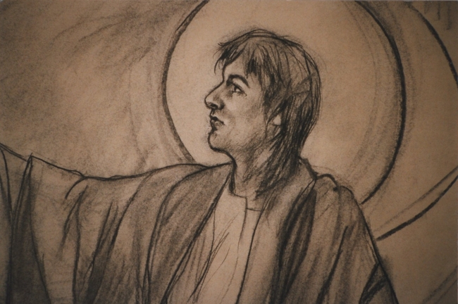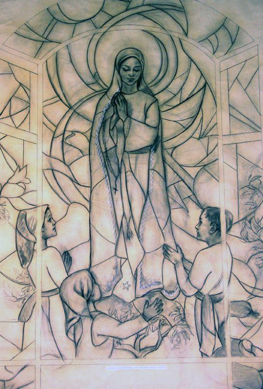 Angela Ferraris sviluppa poi e definisce con maggiore precisione la visione completa dell'opera, precisando ogni dettaglio su carta, disegnando a carboncino in scala reale 1:1.